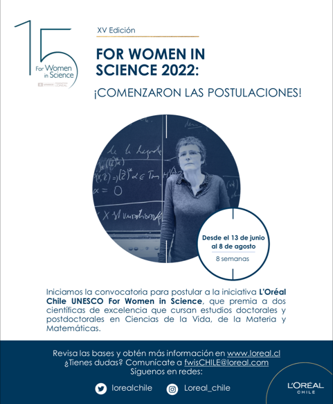[Exalumnosdim] Convocatoria del Programa For Women in Science Chile 2022.